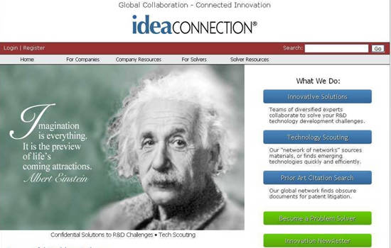 IdeaConnection是全球最大的开放创新中介平台,该平台拥有一个多样性的世界级专家团队,成员及合作实验室遍及世界各地;涉猎众多行业领域(从纳米技术、虚拟实境到社会生态学、产品开发),专门为企业提供创新性和创造性解决方案。专家组成员的挑战周期大约为12周,周期结束后,用户将收到2到8个可由用户轻松评估的深度解决方案。 IdeaConnection的两个显著特点是:(1)只为成功支付(pay for success):只有企业客户对解决方案满意时才支付费用,若挑战失败,委托方可不支付任何费用;(2)秘密协作:挑战委托方的个人信息,挑战细节以及已接收挑战方案等信息将对挑战组成员严格保密。此外,IdeaConnection还提供创意集会,为非营利组织和基金会举办竞赛,同行互查和技术筛选等收费服务。