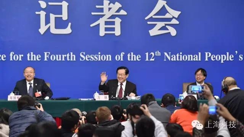 十二届全国人大四次会议新闻中心于3月10日10时45分在梅地亚中心多功能厅举行记者会,邀请科技部部长万钢、中国科技大学常务副校长潘建伟、浙江省科技厅厅长周国辉就“科技创新发展”的相关问题回答中外记者的提问。