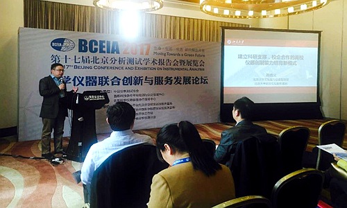 2017年10月11日下午,在BCEIA2017期间,科学仪器联合创新与服务发展论坛举办。论坛由中国分析测试协会、首都科技条件平台检测与认证领域中心、北京科学仪器装备协作服务中心主办,首都科技条件平台北京大学研发实验服务基地、中国科学院研发实验服务基地、平谷工作站,以及中国仪器仪表学会分析仪器分会协办。