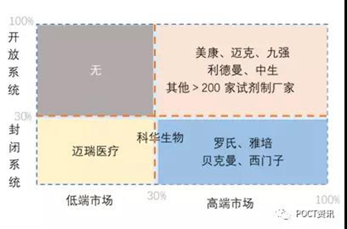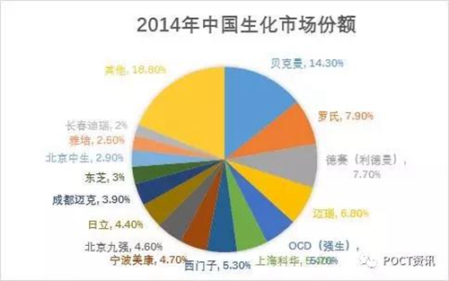 POCT市场尚未成熟,各厂家市场份额较小,,整体处于量多质次的阶段