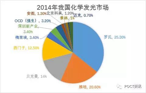 目前国内化学发光90%市场被进口厂家垄断,前4家占80%以上的份额。